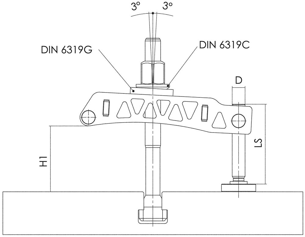 Maß H1 ist abhängig von Nutentiefe nach DIN 650, sowie Einschraublänge der Mutter