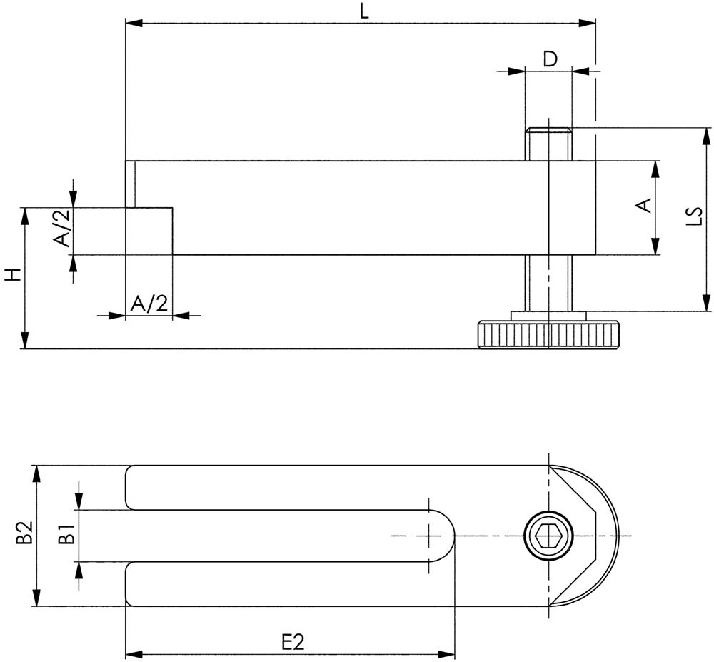 Maß H: Abhängig von Nutentiefe nach DIN 650 sowie Einschraublänge der Mutter. Die niedrigste Spannhöhe wird durch Umdrehen des Spanneisens erreicht.