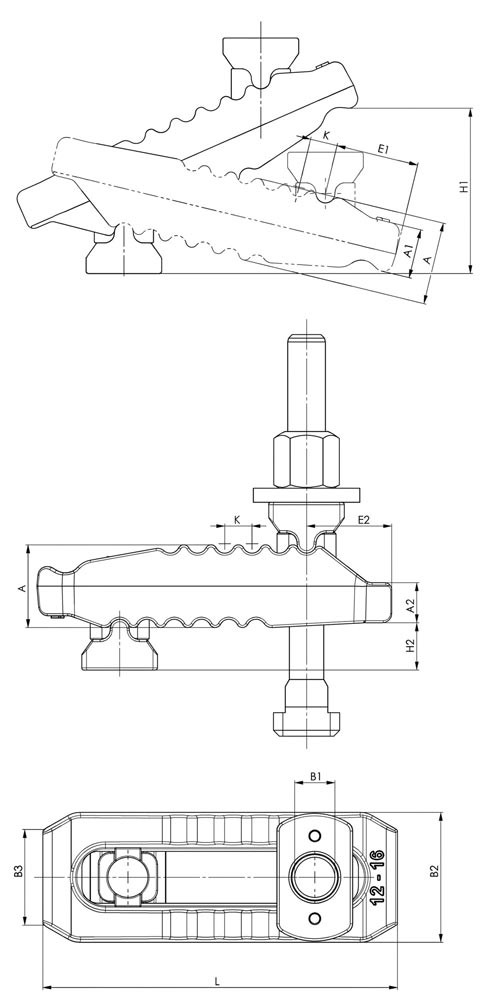 Spannpratze Nr. 6312VT Krokodil für T-Nut 12 mm Spannhöhe 0-70 mm M12 x 12 x 160 mm E6438107
