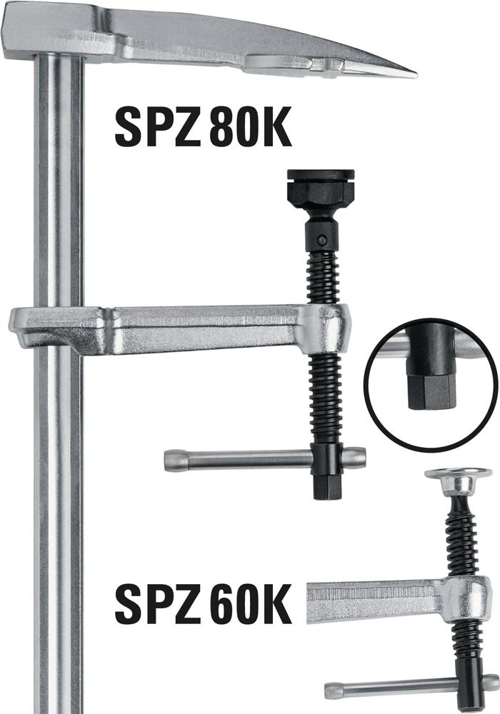 mit einschlagbarer Spitze · breite Schlagfläche · bewegliche Spezialdruckplatte (schwenkbar bis 35 Grad) · stabiler Sechskant zum kraftvollen und kontrollierten Anspannen mit einem Drehmomentschlüssel · (Drehmomentschlüssel gehört nicht zum Lieferumfang) · Spannkraft bis zu 12000 N