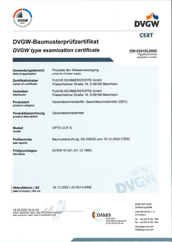 gebrauchsfertig · synthetisch · DVGW-geprüft, DVGW-Prüfnummer: DW-0201AT2532 · für die Installation von Trinkwasserversorgungsanlagen und im Maschinenbau für die Lebensmittelbranche · mit einem Höchstmaß an Schmierkraft, nur unverdünnt einzusetzen · wesentliche Verbesserung der Schneidleistung, garantiert längere Lebensdauer von Maschinen und Werkzeugen · bevorzugtes Einsatzgebiet sind Gewindeschneidmaschinen · mineralöl- und silikonfrei