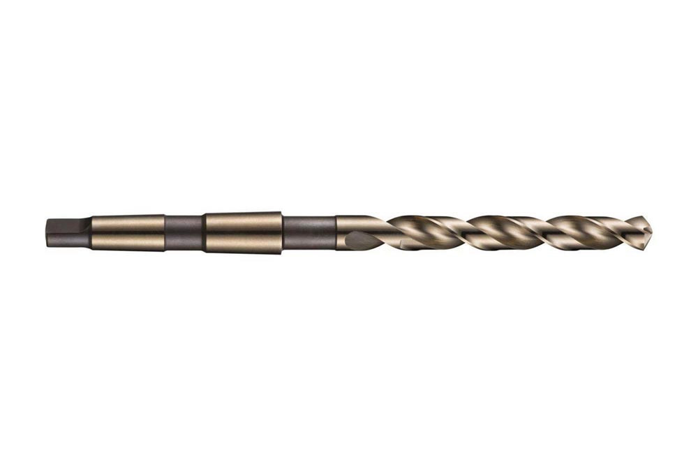 Spiralbohrer Bohrer mit Kegelschaft · Durchmesser 12mm mit einer Gesamtlänge von 182mm und einer Schneidenlänge von 101mm gemäß DIN 345 Standard mit 118° Spitzenwinkel · Kobalt basiertes HSS-E mit Bronzebeschichtung für 4xD Bohrungen ohne Zentrierung in Stahl