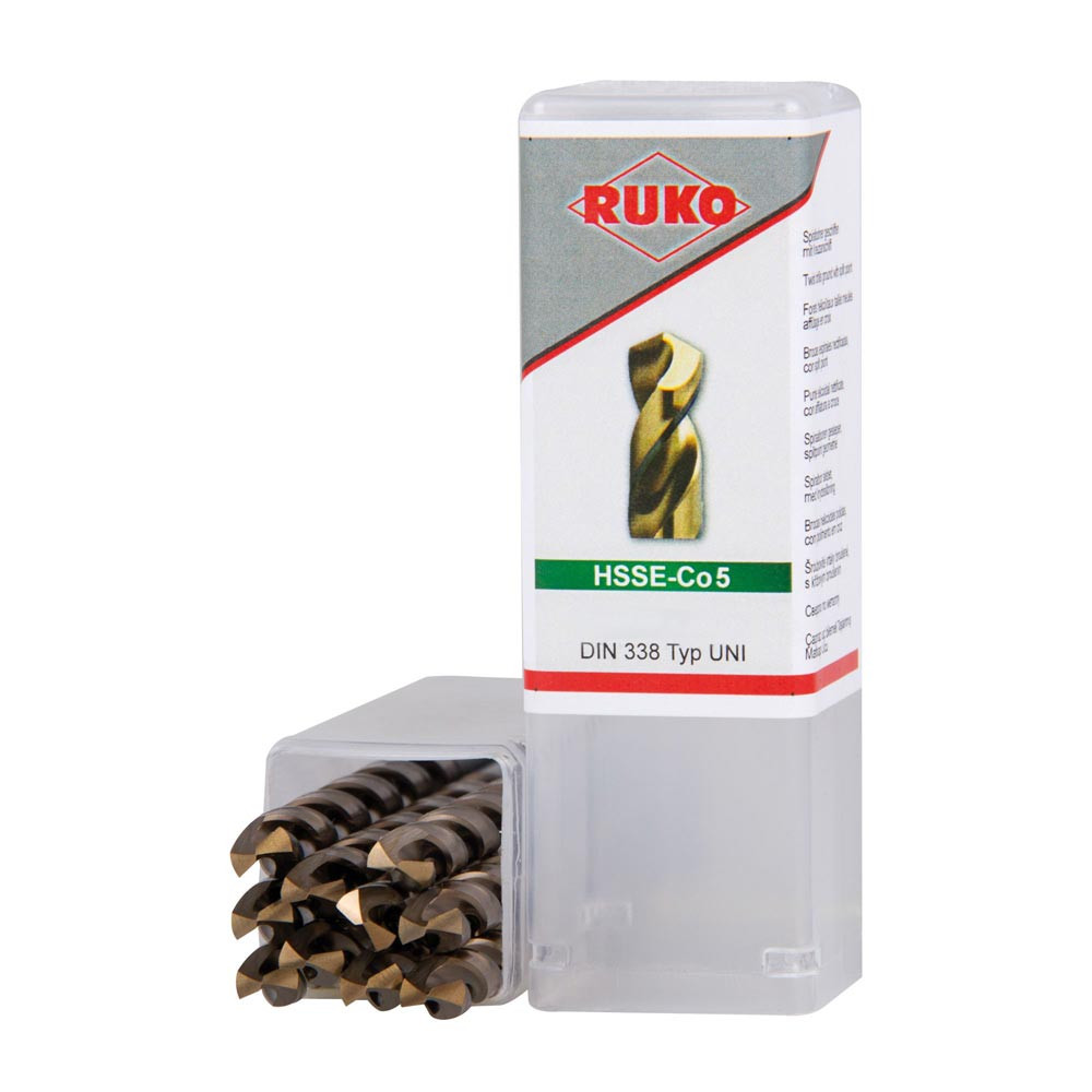 HSS-Co5 · DIN 338 · Typ UNI · Spitzenwinkel 135 ° · profilgeschliffen · Kreuzanschliff · rechtsschneidend · 3-Flächenschaft verhindert das Durchdrehen im Bohrfutter · zudem sorgt der Schaft für eine optimale Kraftübertragung · Die 135º Hochleistungsschneide verhindert das Abrutschen beim Anbohren von gewölbten Oberflächen · die schwarze Fase erhöht die Verschleißfestigkeit und verhindert Kaltverschweißungen und Aufbauschneiden · für NE-Metalle, Bau- und Kohlenstoffstähle, hochlegierte Stähle (z.B. V2A/V4A), Magnesiumlegierungen, Kunststoffe sowie Aluminium · mit Zylinderschaft: bis Nenn-Ø 3,5 mm