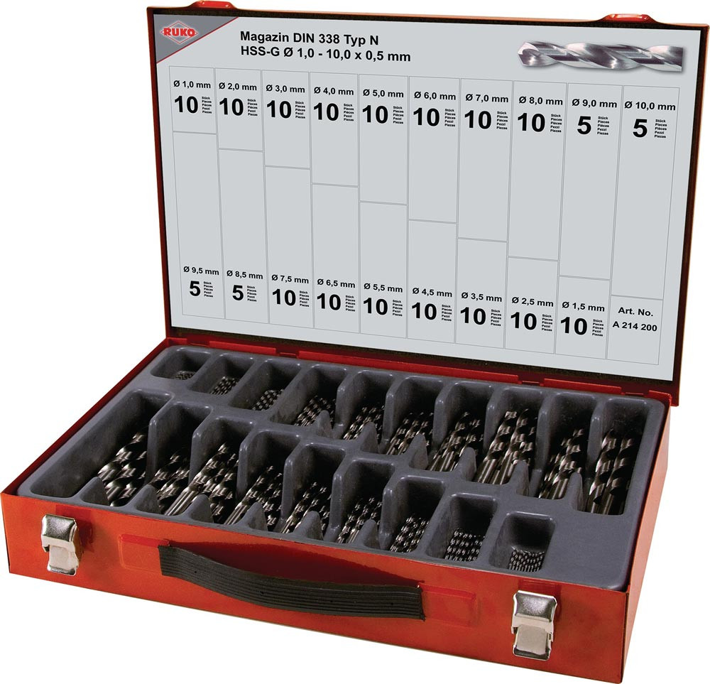 Spiralbohrermagazin DIN 338 Typ N 1-10 mm steigend um 0,5 mm HSS-Co5 170 teilig