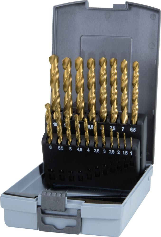 Spiralbohrersatz DIN 338 Typ N Nenn-Ø 1-10x0,5 mm HSS TiN 19 teilig Kunststoffkassette