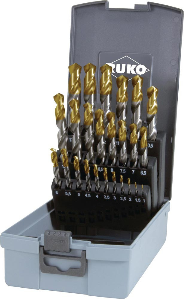 Spiralbohrersatz DIN 338 Typ N Nenn-Ø 1-13x0,5 mm HSS TiN-kopfb. 25-teilig Kunststoffkassette