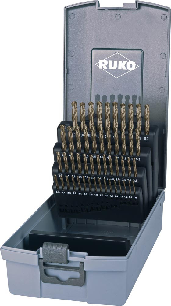 Spiralbohrersatz DIN 338 Typ N Nenn-Ø 1-5,9x0,1 mm HSS-Co5 50 teilig Kunststoffkassette