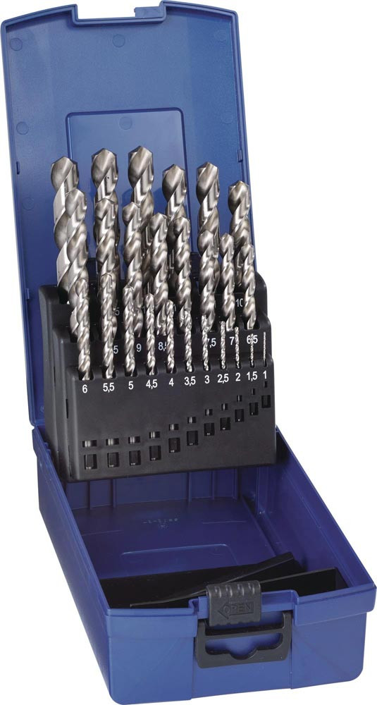 Spiralbohrersatz DIN 338 Typ W Nenn-Ø 1-10x0,5 mm HSS 19 teilig Kunststoffkassette