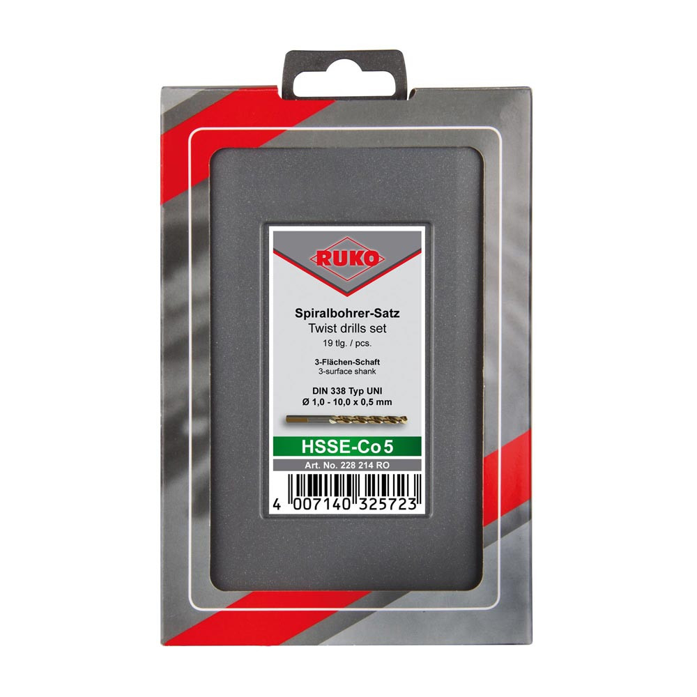 Spiralbohrersatz DIN 338 UNI Nenn-Ø 1-10x0,5 mm HSS-Co5 19-teilig 19-teilig Kunststoffkassette