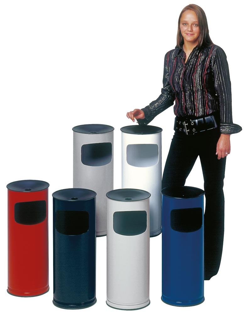 Stand-Kombi-Ascher, rund, Trichtereinwurf, Vol. 17 Liter, Durchm.xH 250x610 mm, Aschereinsatz schwarz, Aluschale für Zigarettenabfall, Farbe weiß