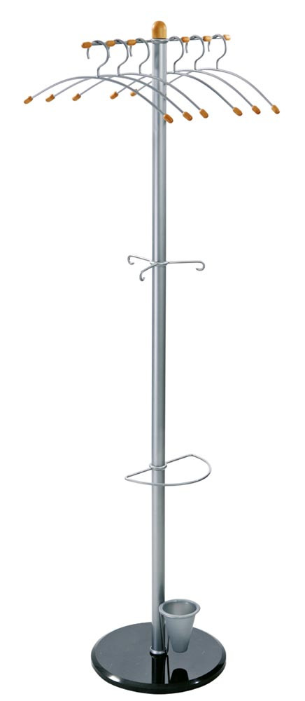 Standgarderobe, Durchm.xH 380x1880 mm, 5 Aufhänger, Schirmständer, aus Metall mit Mamorfuß, silber E859502