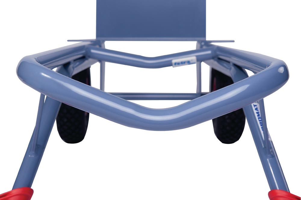 mit Kufen · stabile, geschweißte Stahlrohrkonstruktion · Stahlblechschaufel, Radschutz und Sicherheitsgriffe · pulverbeschichtet taubenblau, RAL 5014 · mit auswechselbaren Kunststoff-Gleitkufen · verschraubte Radbefestigung, einfacher Radwechsel · passendes Ersatzrad siehe Art.-Nr. 6461581