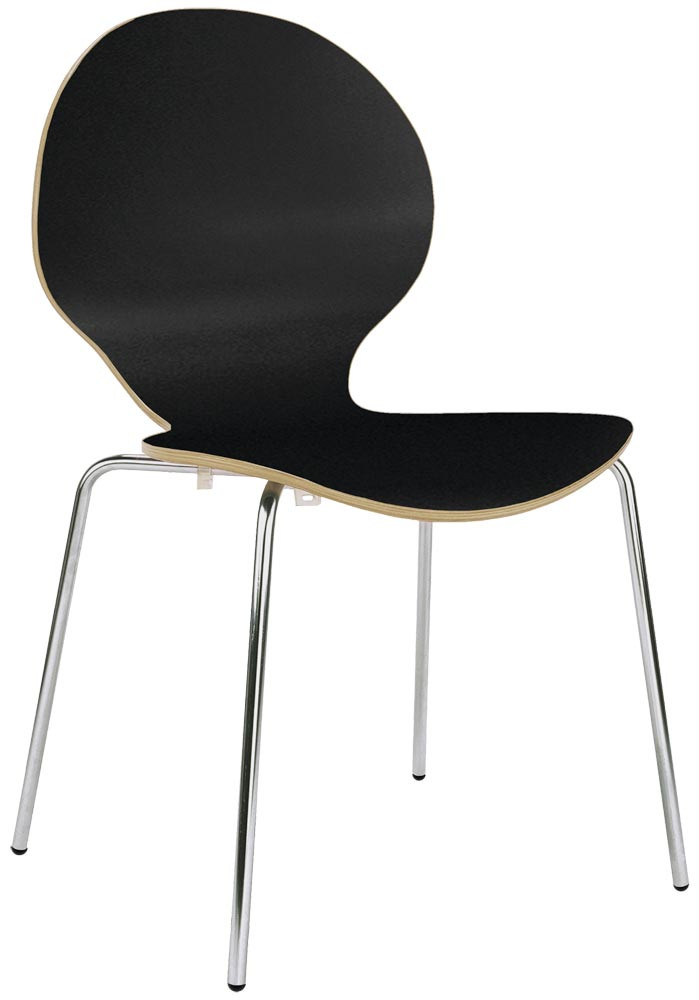 Stapelstuhl, Buchenschichtholz laminiert, Sitz/Rücken schwarz, Alu 4-Fuß Gestell RAL 9006 , Pack a4 Stück E6475810