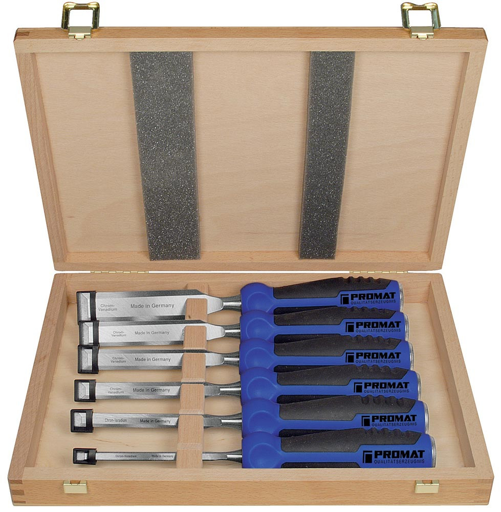 Stechbeitelsatz 6,10,12,16,20,26 mm 2-Komponentenheft 6-teilig Holzkasten