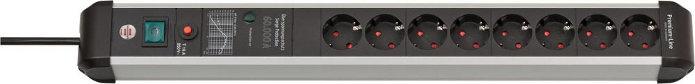 Steckdosenleiste Premium-Protect-Line 16 A 230 V schwarz/silber Steckdosen 8 3 m PVC 1,5 mm