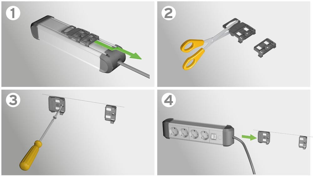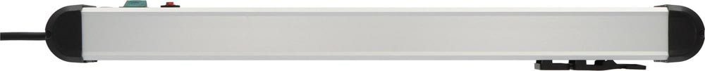 silber/schwarz · schützt wertvolle Geräte vor Überspannungen mit einem max. Ableitstrom bis zu 60.000 A · Sicherheitsschalter beleuchtet, zweipolig ein-/ausschaltbar · Steckdosen mit erhöhtem Berührungsschutz in praktischer 45°-Anordnung · Gesamtleistung max. 16 A/3500 W · Kabelbezeichnung H05VV-F 3G1,5 · Sicherungsautomat 16 A · Entstörfilter EMI/RFI