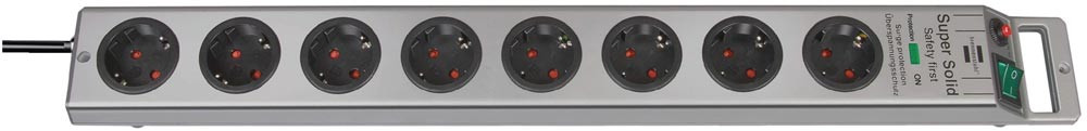 Steckdosenleiste Super Solid 16 A 230 V silber / silber Steckdosen 8 2,5 m H05VV-F 3 x 1,5 mm