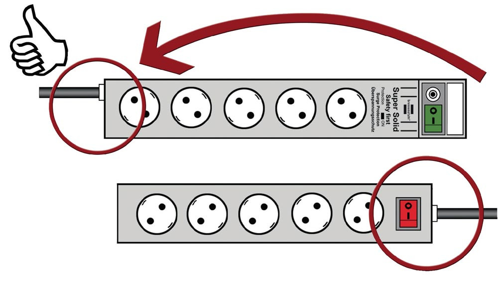 · Kabeleingang gegenüber dem Schalter, dadurch praktische Bedienung z.B. unter dem Schreibtisch