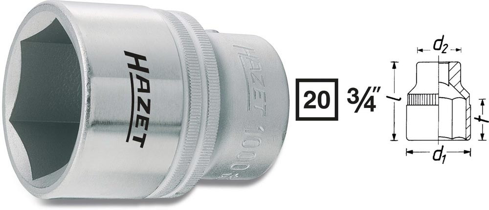 Steckschlüsseleinsatz 1000 3/4 6-kant Schlüsselweite 34 mm Länge 60 mm
