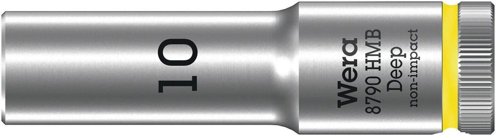 Hand- und Maschinensteckschlüssel-Einsatz (ISO 2725-Teil 3) von Wera ermöglicht einen Einsatz im Hand- und Maschinenbetrieb · mit ″Take it easy″ Werkzeugfinder mit Farbkennzeichnung nach Größen - zum einfachen und schnellen Finden des benötigten Werkzeugs · griffig zum leichten Greifen auch mit öligen Händen · mit Kugelfangrille · für Außensechskantschrauben- und muttern · aus mattverchromtem Chrom-Vanadium