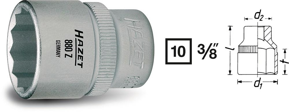 Steckschlüsseleinsatz 880Z 3/8 12-kant Schlüsselweite 12 mm Länge 27 mm E6447205