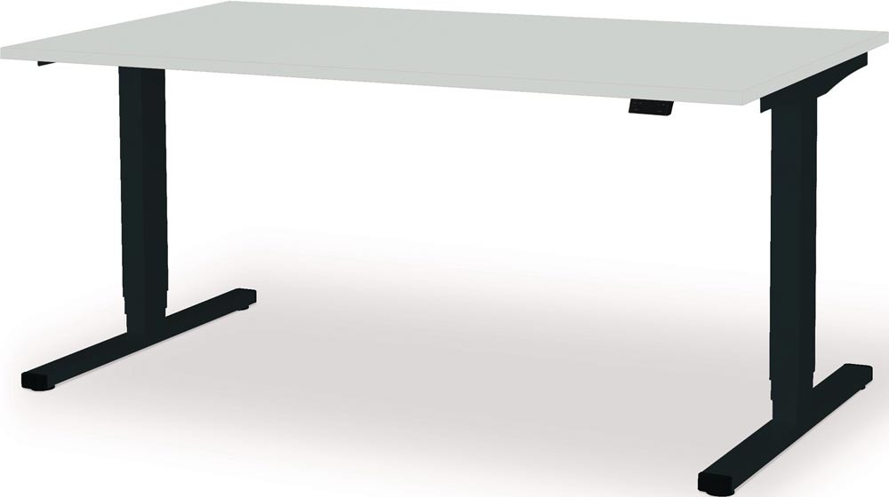Steh-/Sitzarbeitsplatz levero H650-1250xB1600xT800mm anthrazitgrau, RAL 7016/lichtgrau elektrisch höhenverstellbar