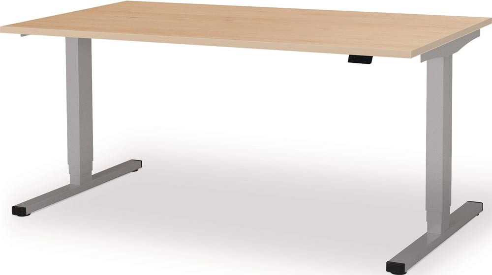 Tischplatte aus 25-mm dreischichtigen Feinspanplatten melaminharzbeschichtet, mit einem ABS-Umleimer, inkl. abklappbarer Kabelwanne · elektromotorische Höhenverstellung · verstellbar von 650 bis 1250 mm · je Teleskopsäule ein integrierter Hochleistungsmotor, Hubgeschwindigkeit 50mm/sec. · Belastung: dynamisch 70 kg, statisch 75 kg · Gestell mit Nivelliergleitern für Bodenausgleich · Standardbedienelement Auf/Ab - Soft-Start/Stopp-Funktion · Anti-Kollisions-System
