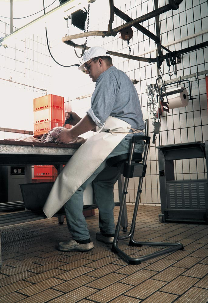 ∙ Stabiles Stahl- oder Edelstahlrohrgestell ∙ Ergonomisch geformter Komfortsitz aus Integralschaum ∙ Mit acht Rastpositionen höhenverstellbar von 600-850 mm ∙ Sitzneigung um 15° verstellbar ∙ Horizontal 16° in jede Richtung schwenkbar, mit Rückstellautomatik