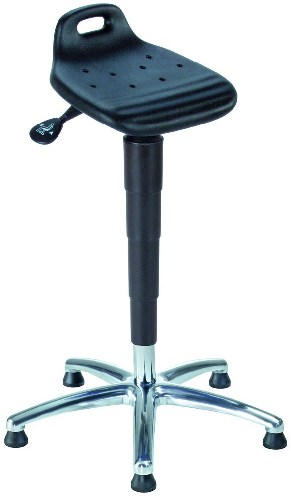 Stehhilfe mit Rückenlehne, Sitz PU-Schaum, Sitz Höhe 620-880 mm, neigbar, Gestell chrom/schwarz