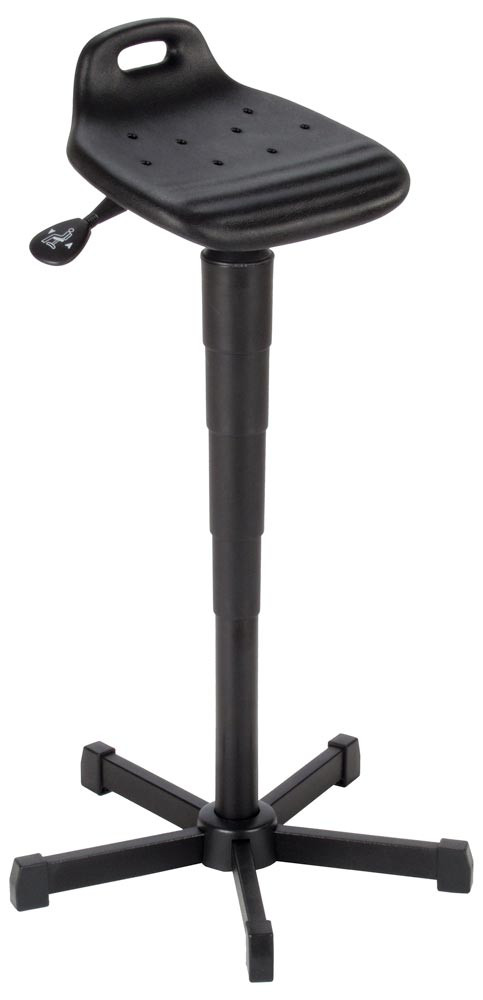 Stehhilfe mit Rückenlehne, Sitz PU-Schaum, neigbar, Sitz Höhe 610-880 mm, Gestell schwarz