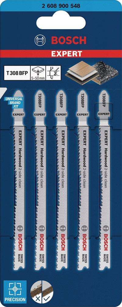 Stichsägeblatt Hardwood 2-side T 308 BFP Gesamtlänge 117 mm Zahnteilung 2,2 mm 5 Stück / Karte