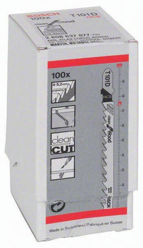 Stichsägeblatt T 101 D Clean for Wood L.100mm Zahnteilung 4-5,2mm HCS freiwinkel-/zähnegeschliffen f.Weichholz/Span-/Tischler-/Faserplatten 100er Pack