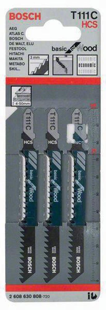 Stichsägeblatt T 111 C Basic for Wood L.100mm Zahnteilung 3mm HCS geschränkt/gefräst f.Weichholz/Span-/Tischler-/Faserplatten 3er Pack