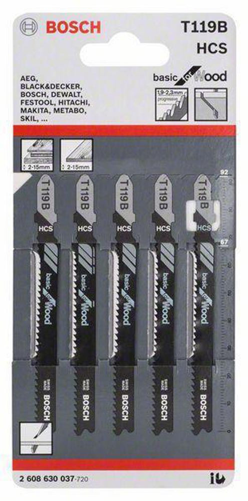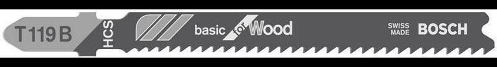 Stichsägeblatt T 119 B Basic for Wood L.92mm Zahnteilung 1,9-2,3mm HCS gewellt/gefräst f.Weichholz/Span-/Tischler-/Faserplatten 5er Pack