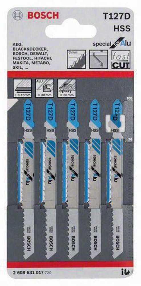Stichsägeblatt T 127 D Gesamtlänge 100 mm Zahnteilung 3 mm HSS 5 Stück / Karte