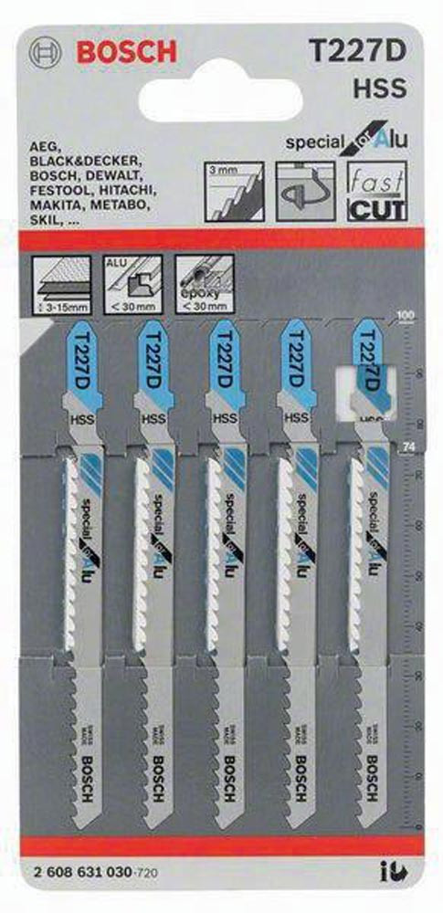 Stichsägeblatt T 227 D Gesamtlänge 100 mm Zahnteilung 3 mm HSS 5 Stück / Karte