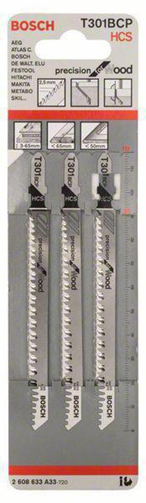 Stichsägeblatt T 301 BCP Precision for Wood L.117mm Zahnteilung 2,5mm HCS freiwinkel-/zähnegeschliffen f.Weichholz/Span-/Tischler-/Faserplatten 3er