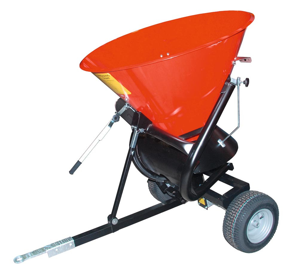· Geeignet für Sand und Salz · Streuvorgang erfolgt über die Drehbewegung der Räder · Hebel zum Einstellen der Streubreite und -richtung · Trichter lackiert in RAL 3000 Feuerrot