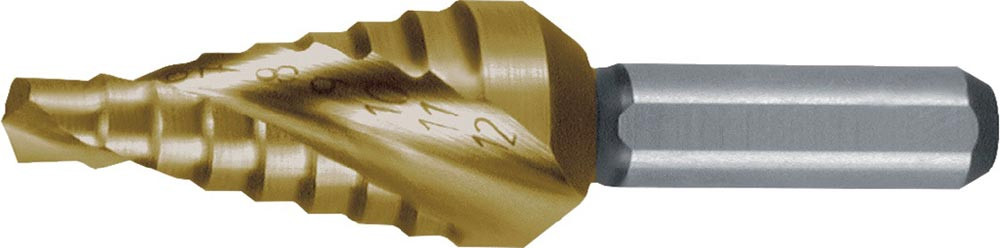 Stufenbohrer Bohrbereich 4-12 mm HSS TiN spiralgenutet Schneidenanzahl 2