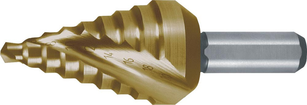 Stufenbohrer Bohrbereich 4-20 mm HSS TiN spiralgenutet Schneidenanzahl 2