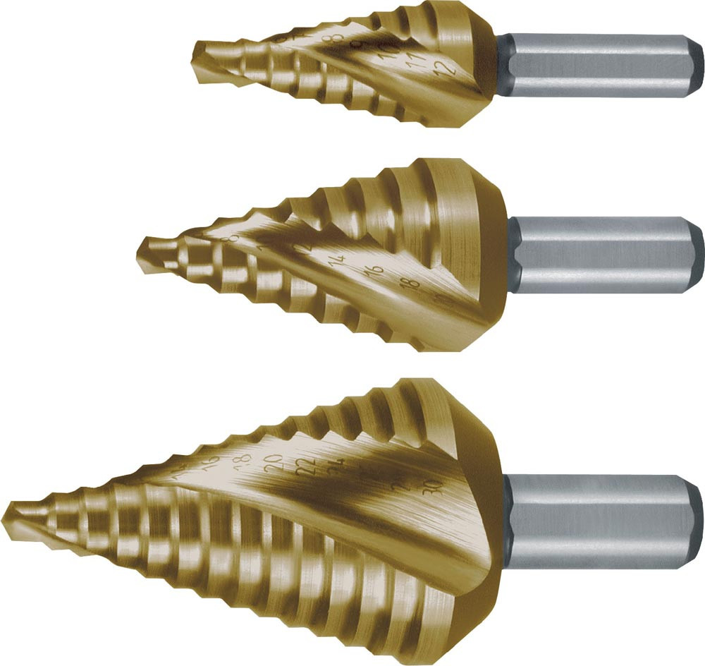 Stufenbohrer Bohrbereich 4-30 mm HSS TiN spiralgenutet Schneidenanzahl 2