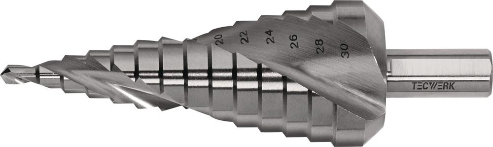 Stufenbohrer Bohrbereich 4-30 mm HSS spiralgenutet Schneidenanzahl 2 Stufenanzahl 14