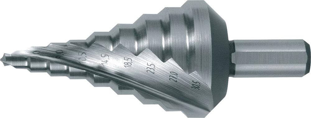 Stufenbohrer Bohrbereich 5,3 - 30,5 mm HSS spiralgenutet Schneidenanzahl 2 Stufenanzahl 9