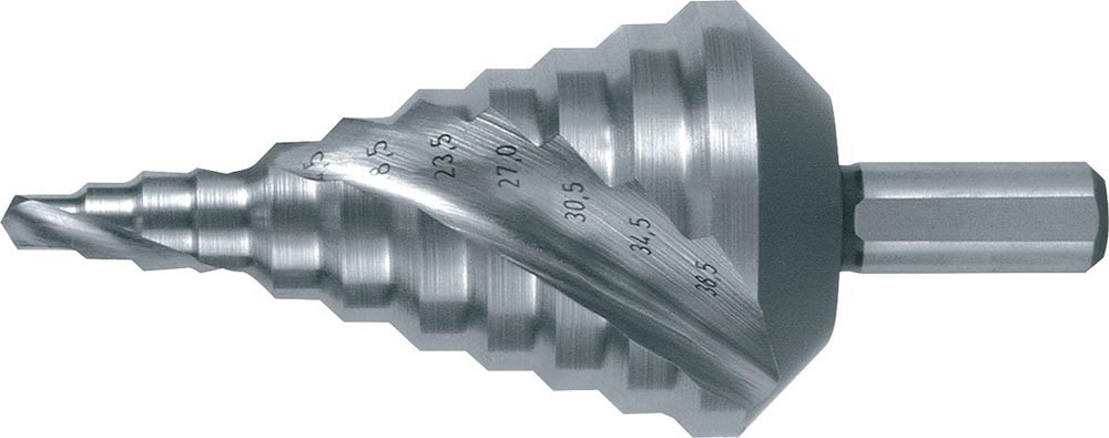 Stufenbohrer Bohrbereich 5,3 - 38,5 mm HSS spiralgenutet Schneidenanzahl 2 Stufenanzahl 11