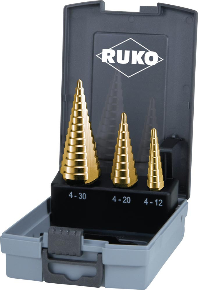 Stufenbohrersatz Ø 4-12/4-20/4-30 mm HSS-TiN geradegenutet 3 teilig Kunststoffkassette