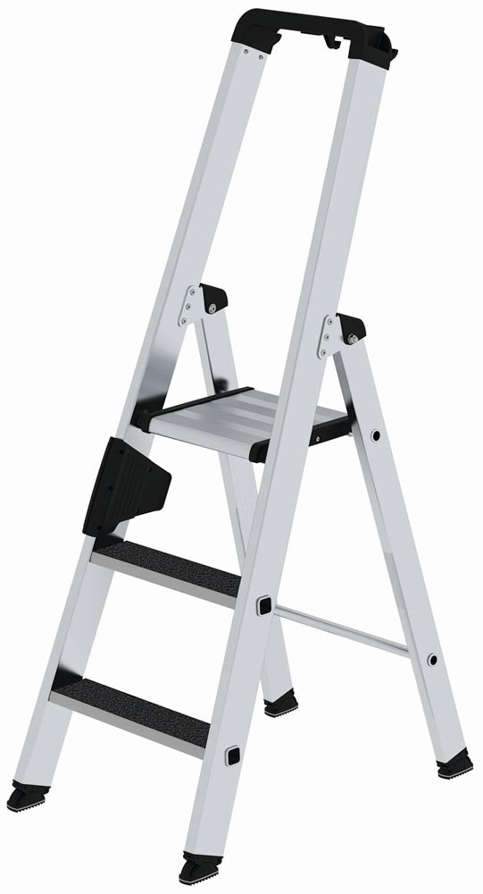 Stufenstehleiter, Aluminium, 3 Stufen, einseitig begehbar, Höhe 1,37 m, Arbeitshöhe 2,70m, mit rutschhemmender Trittauflage (R13)