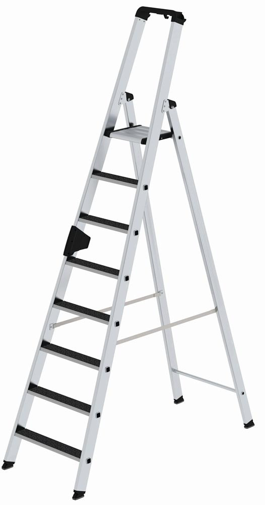 Stufenstehleiter, Aluminium, 8 Stufen, einseitig begehbar, Höhe 2,51 m, Arbeitshöhe 3,90 m, mit rutschhemmender Trittauflage (R13)