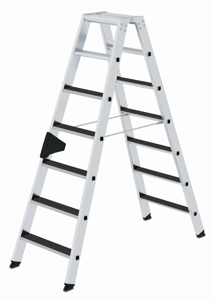 Stufenstehleiter, Aluminium, beidseitig begehbar, 2 x 7 Stufen, Höhe 1,63 m, Arbeitshöhe 3,15 m, mit rutschhemmender Trittauflage (R13)