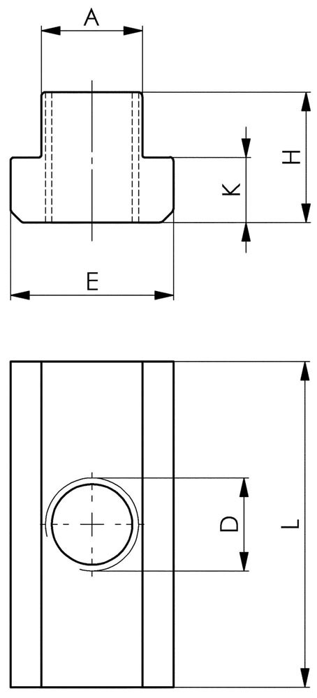 T-Nutenstein Nr. 508L T-Nut 28 mm M24 lang