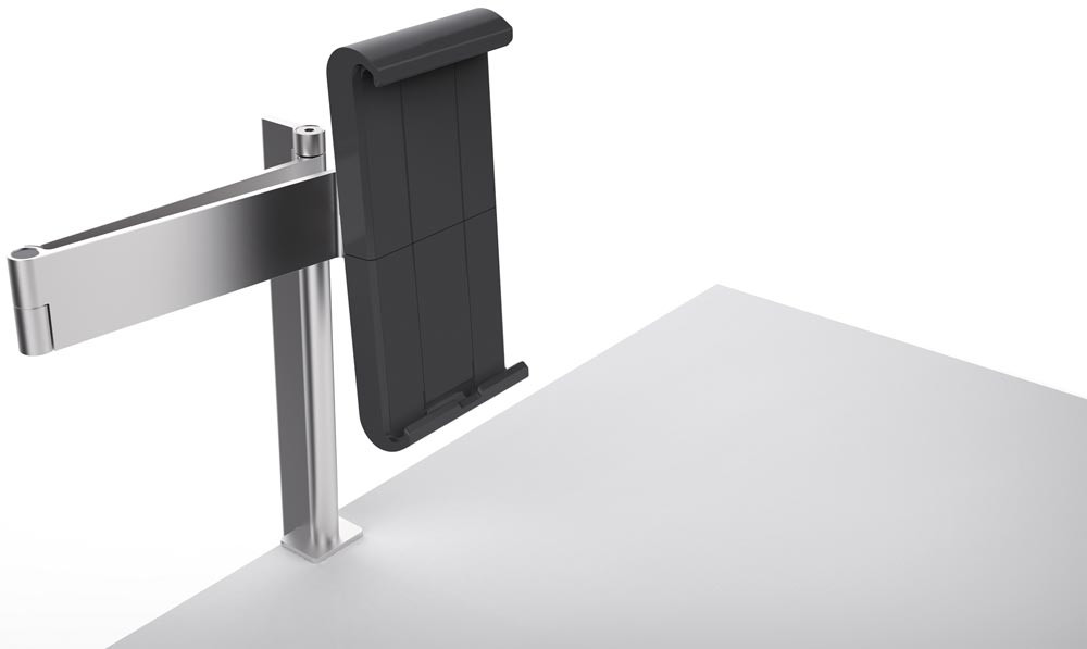 · Variables Aufnahmemodul für alle Tablet-Größen von 7" bis 13" · Symmetrische Öffnung von 160-275 mm · Einfaches Einsetzen und Entnehmen des Tablets · Gummierte Oberflächen zum Schutz der Tablets vor Beschädigungen · 360° drehbar für Hoch- und Querformat mit Rasterpunkten bei jeweils 90° · Langloch im Haltearm ermöglicht die Stromzuführung mittels Ladekabel · Diebstahlsicherung durch Verriegelung des Halters mit Spezialschlüssel · Wirkungsvoller Schutz vor seitlichem Herausziehen des Tablets · Farbe: metallic-silber